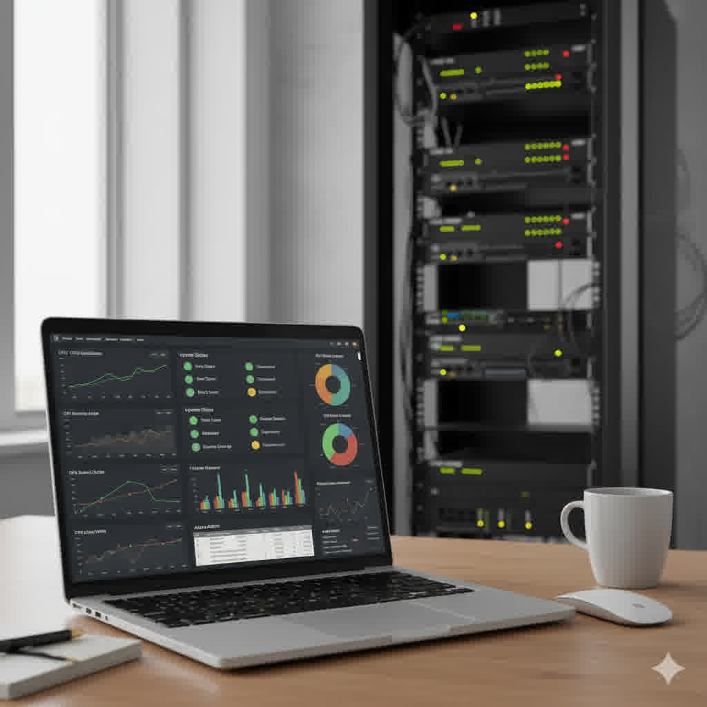 Personalizowane pulpity z metrykami w czasie rzeczywistym – uptime, latency, throughput. Dostępne via web/mobile app, z raportami PDF/Excel i analizami trendów dla decydentów biznesowych.